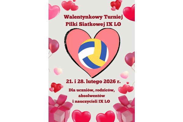 Walentynkowy Turniej Piłki Siatkowej w IX LO dla uczniów, rodziców, absolwentów i nauczycieli naszej szkoły