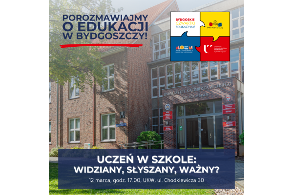 Zmiana spotkania w ramach projektu Bydgoskie Czwartki Edukacyjne.