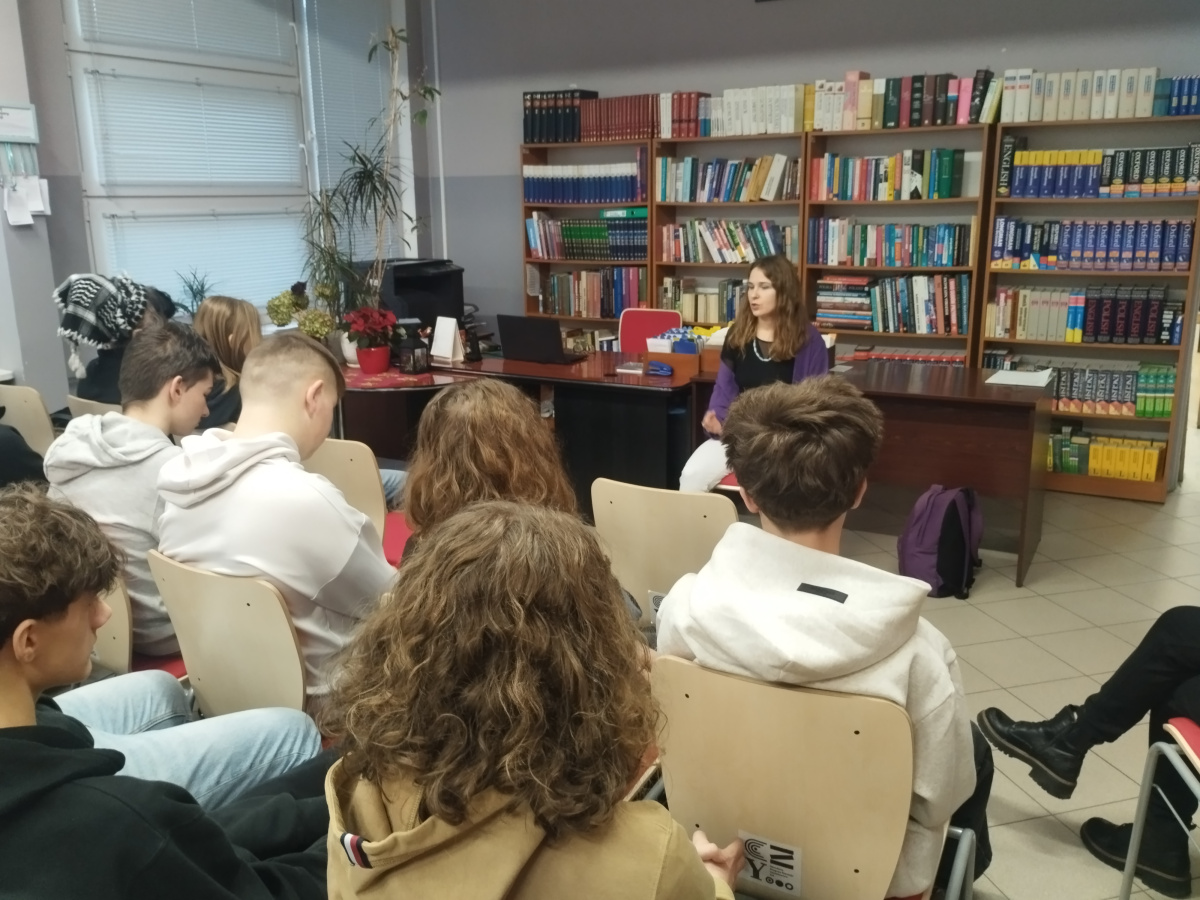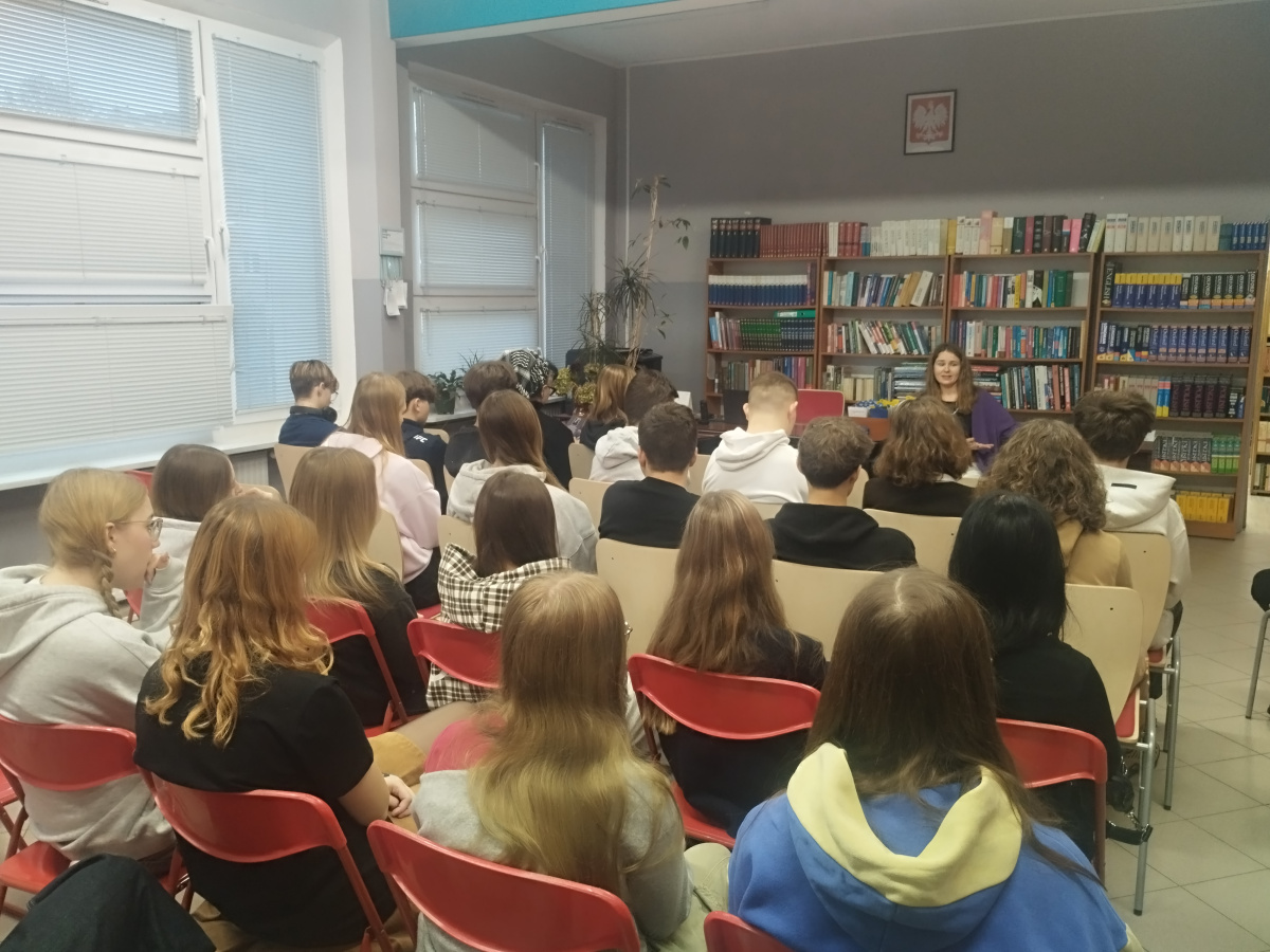 W środę, 3 grudnia uczniowie IX Liceum Ogólnokształcącego w Bydgoszczy mieli wyjątkową okazję spotkać się z Anastasiią Pugachovą — pisarką, artystką i autorką poruszającej książki „Ktoś (trudno zobaczyć kto) na białym jednorożcu”. Spotkanie odbyło się w bibliotece szkolnej.