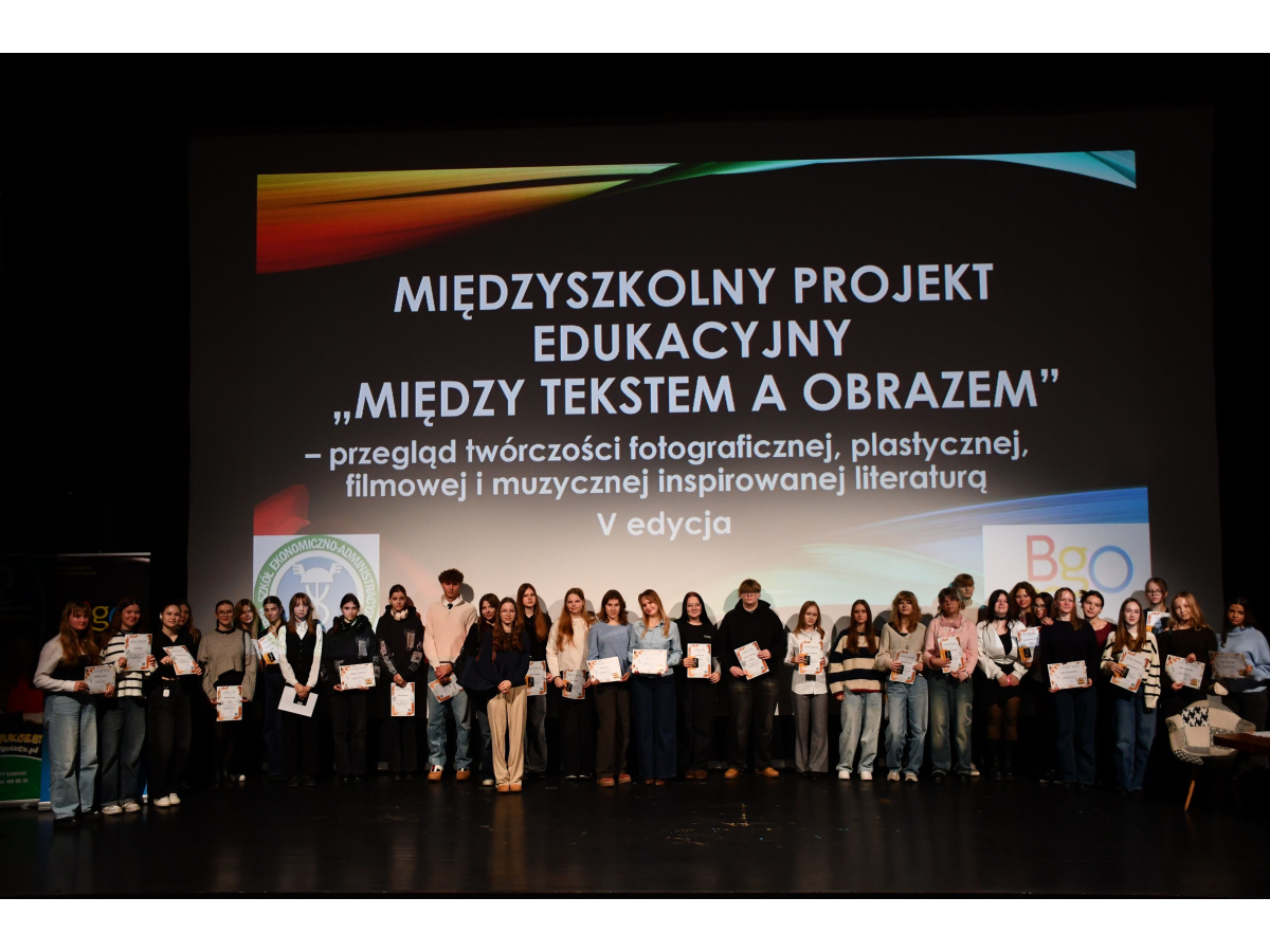Zespół Szkół Ekonomiczno-Administracyjnych w Bydgoszczy po raz piąty realizował projekt „Między tekstem a obrazem”. Naszą szkołę w projekcie reprezentowało dziewięć uczennic: Kaja Bartnik, Polina Yamnik, Zofia Przybyłowska, Zuzanna Gosieniecka, Oliwia Ornowska, Natasza Biniakowska, Maja Gutkowska, Iga Bizon i Sofiia Hryhorieva.