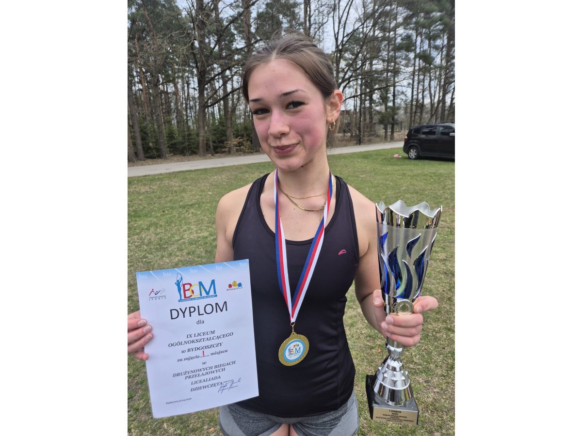 Tydzień później 23.04.2026 również w Myślęcinku odbyły się finały wojewódzkie w tej samej konkurencji. Skład reprezentacji dziewcząt uległ niewielkiej zmianie, Samirę Wojtaś zastąpiła Blanka Ślusarska z klasy 1c. Dziewczęta ponownie bardzo mądrze rozegrały bieg górując nad większością rywalek zwłaszcza w drugiej, trudniejszej połowie dystansu i finiszując w sposób fenomenalny. Po podsumowaniu wyników okazało się, że nasze reprezentantki zostały wice mistrzyniami województwa ustępując tylko jednej sportowej szkole z regionu.