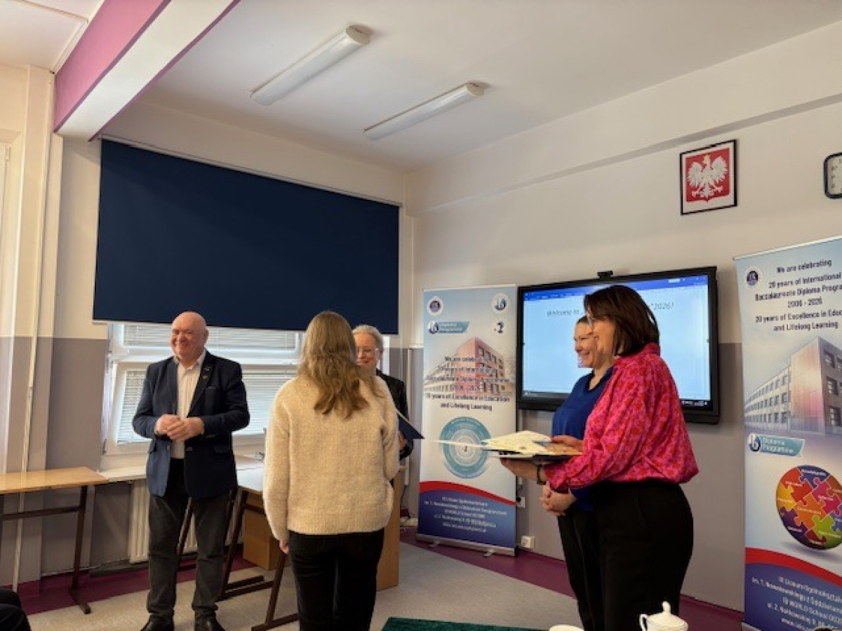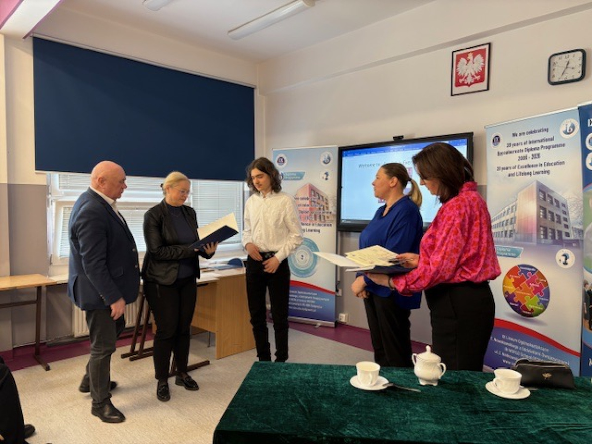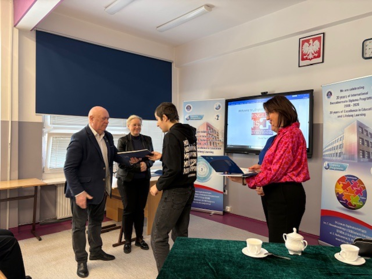 Dyplomy i nagrody laureatom i finalistom wręczyła p.Beata Kwasigroch Dyrektor IX Liceum Ogólnokształcącego im.T.Nowakowskiego z Oddziałami Dwujęzycznymi oraz p.Stanisław Mrówka Przewodniczący Rady Osiedla Wyżyny. W imieniu organizatorów chcielibyśmy bardzo podziękować Radzie Osiedla Wyżyny oraz Radzie Rodziców przy IX Liceum Ogólnokształcącym za finansowe wsparcie Konkursu.