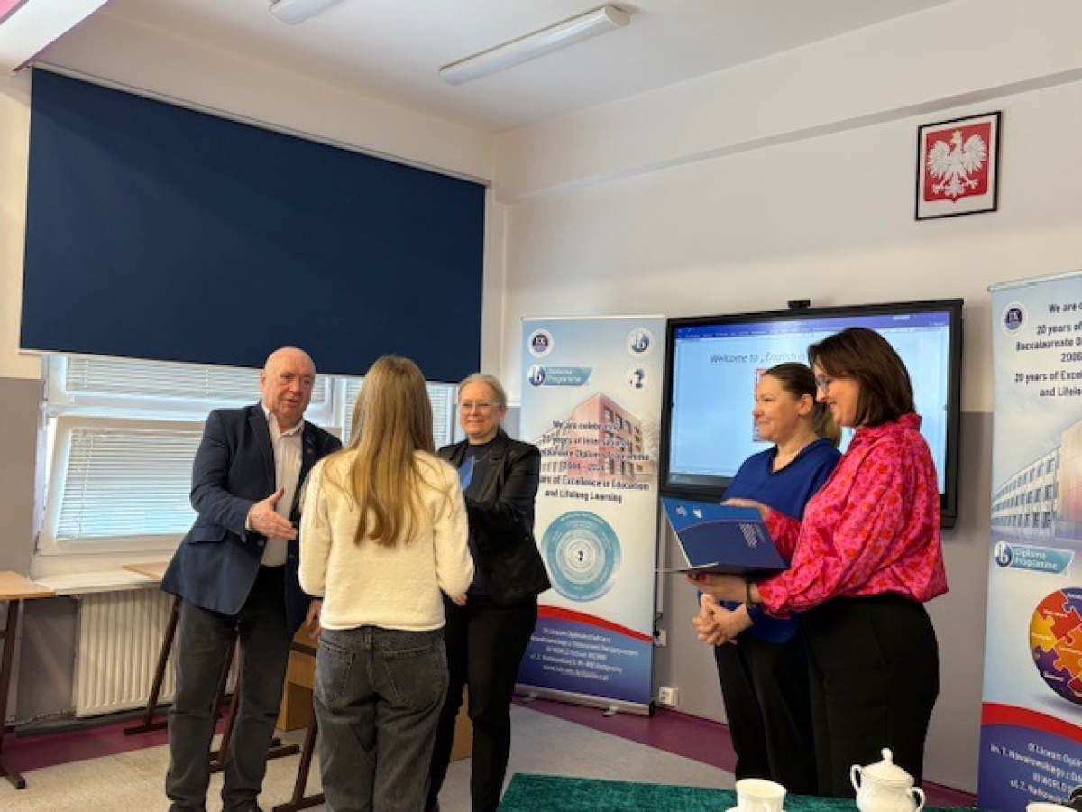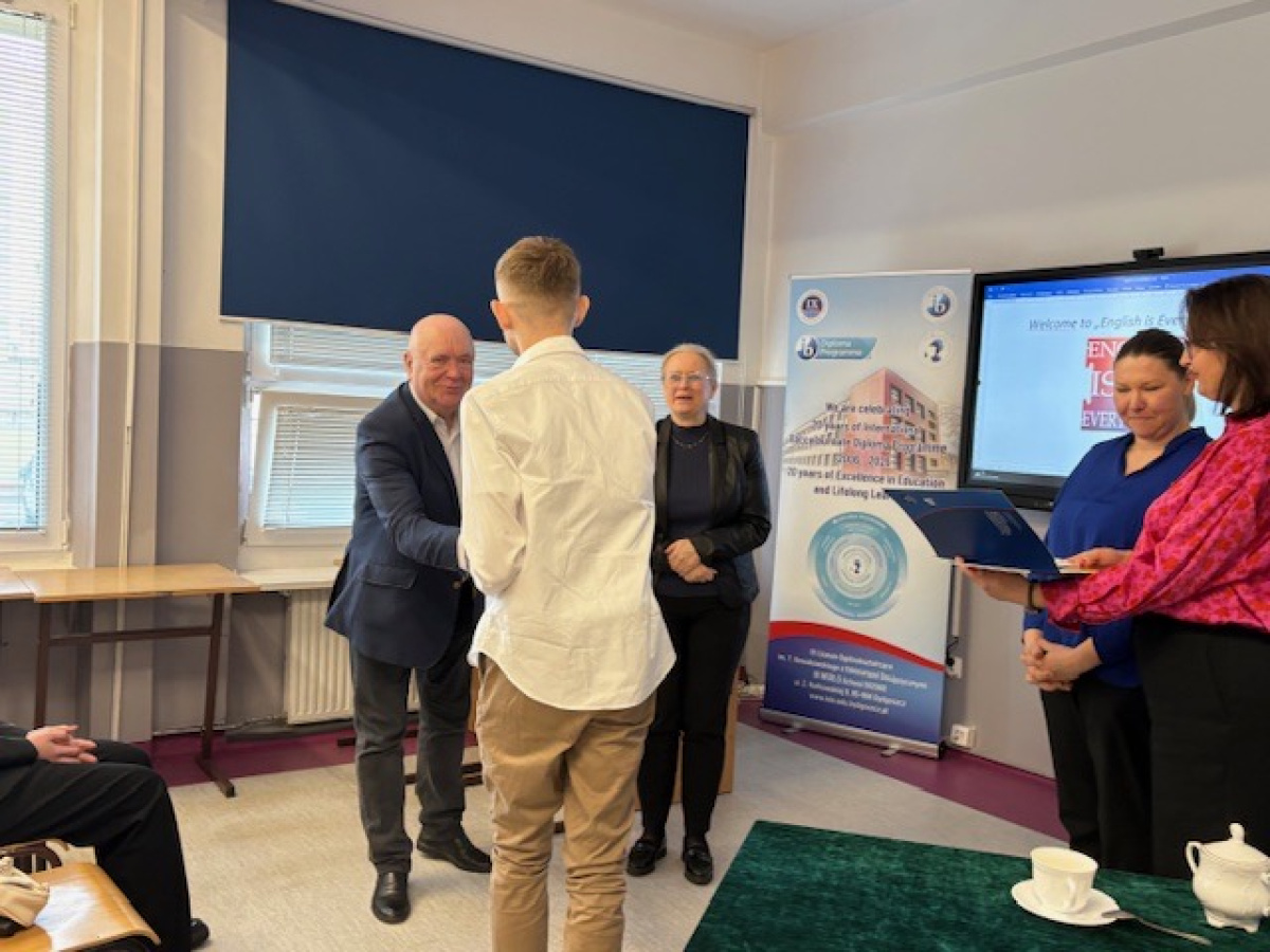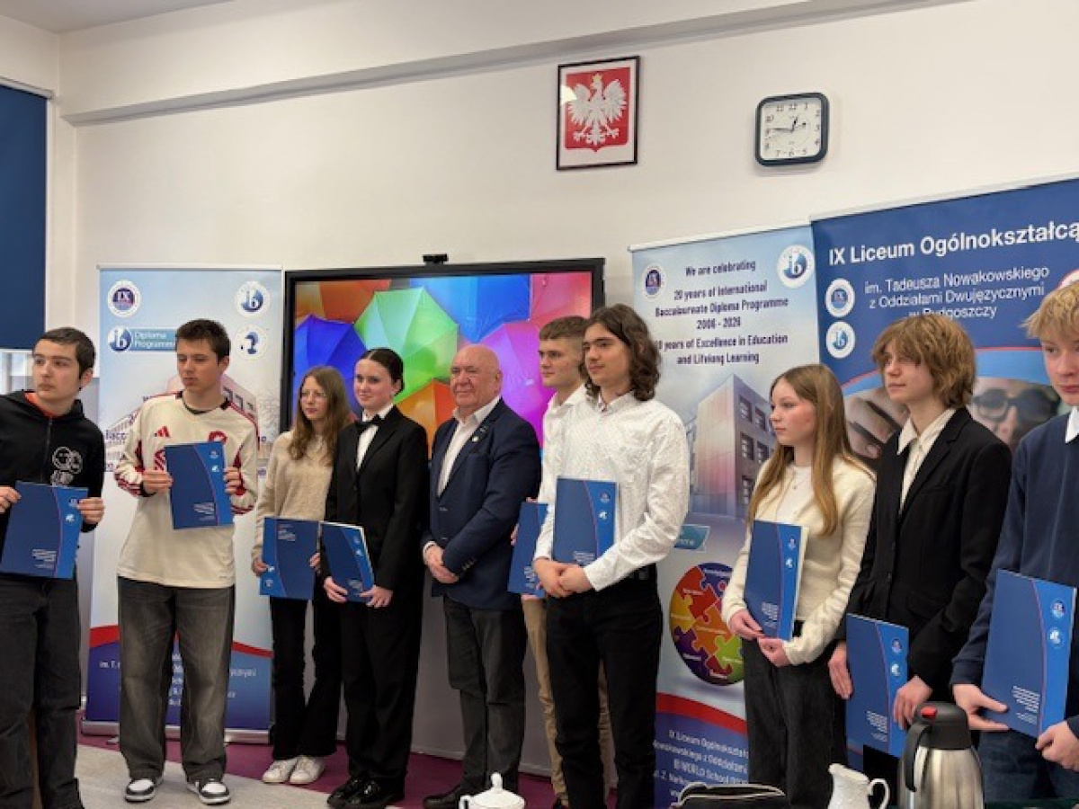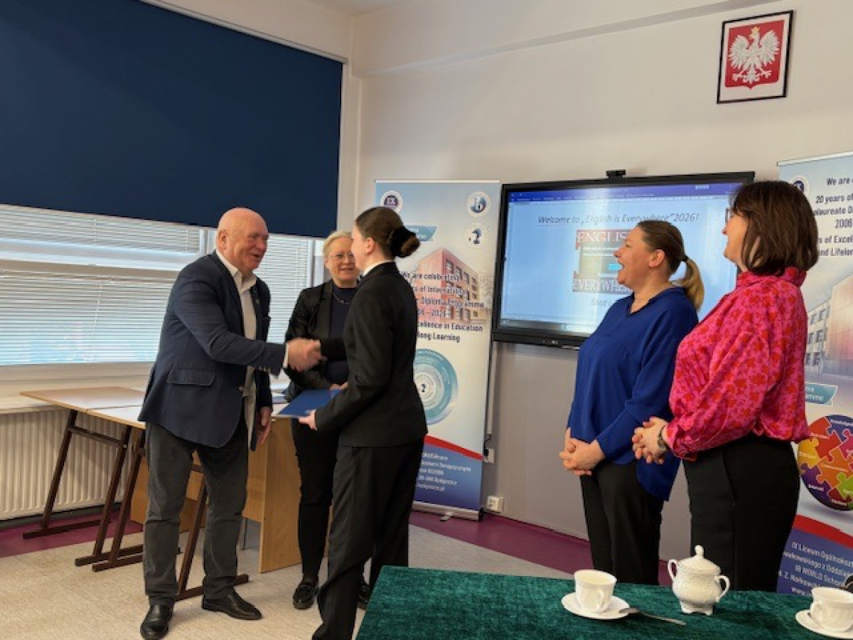 Dyplomy i nagrody laureatom i finalistom wręczyła p.Beata Kwasigroch Dyrektor IX Liceum Ogólnokształcącego im.T.Nowakowskiego z Oddziałami Dwujęzycznymi oraz p.Stanisław Mrówka Przewodniczący Rady Osiedla Wyżyny. W imieniu organizatorów chcielibyśmy bardzo podziękować Radzie Osiedla Wyżyny oraz Radzie Rodziców przy IX Liceum Ogólnokształcącym za finansowe wsparcie Konkursu.
