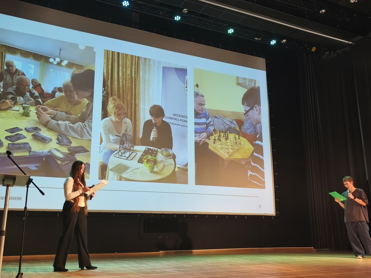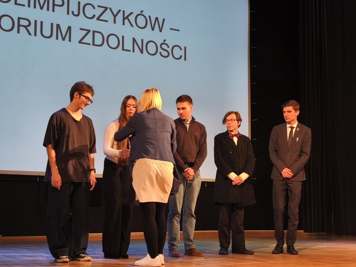 W czwartek 20 listopada 2025 br., w Pałacu Młodzieży w Bydgoszczy, odbyło się Forum Olimpijczyków – Laboratorium Zdolności – była to konferencja naukowa dla uczniów zdolnych. W tym roku wydarzenie to zostało podzielone na dwie części. W części pierwszej tematyką spotkania były: nauki medyczne, przyrodnicze, humanistyczne, ekonomiczne. W ramach konferencji odbyły się: prezentacje dorobku naukowego uczniów zdolnych ze szkół ponadpodstawowych, prelekcje wygłaszane przez pasjonatów, badaczy nauk, którzy swym wystąpieniem zachęcili młodzież do poszerzania wiedzy i dążenia do sukcesu. Gościnny wykład poprowadziła dr Małgorzata Madrak-Grochowska – doktor nauk ekonomicznych, adiunkt w Katedrze Ekonomii i Marketingu na Wydziale Zarządzania PBŚ, nauczyciel akademicki, trener i konsultant ekonomiczny - tematem był “Termometr gospodarki - czyli, czy da się ustawić idealną temperaturę dla wszystkich? Naszą szkołę reprezentowali: Helena Ostrowska i Rafał Harczenko ze swoim nagrodzonym projektem społecznym “Memento Vivere” oraz Mikołaj Beisert z wykładem “Latanie wśród olimpiad”, w którym przedstawił swoją pasję do latania, która stała się interdyscyplinarnym odzwierciedleniem jego edukacyjnych wyborów i sukcesów. Oba wystąpienia spotkały się z uznaniem zarówno widowni jak i organizatorów konferencji, którzy po raz kolejny docenili pracę, zaangażowanie orazpomysłowość naszych uczniów..Druga część Forum odbędzie się 4 grudnia br. i na nim również nie zabraknie
