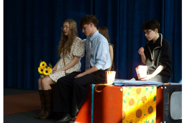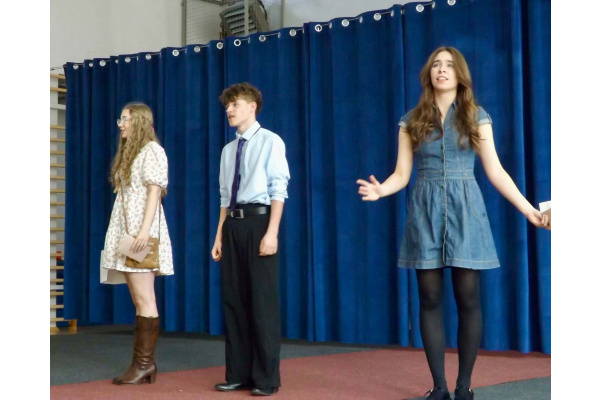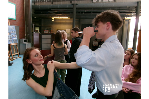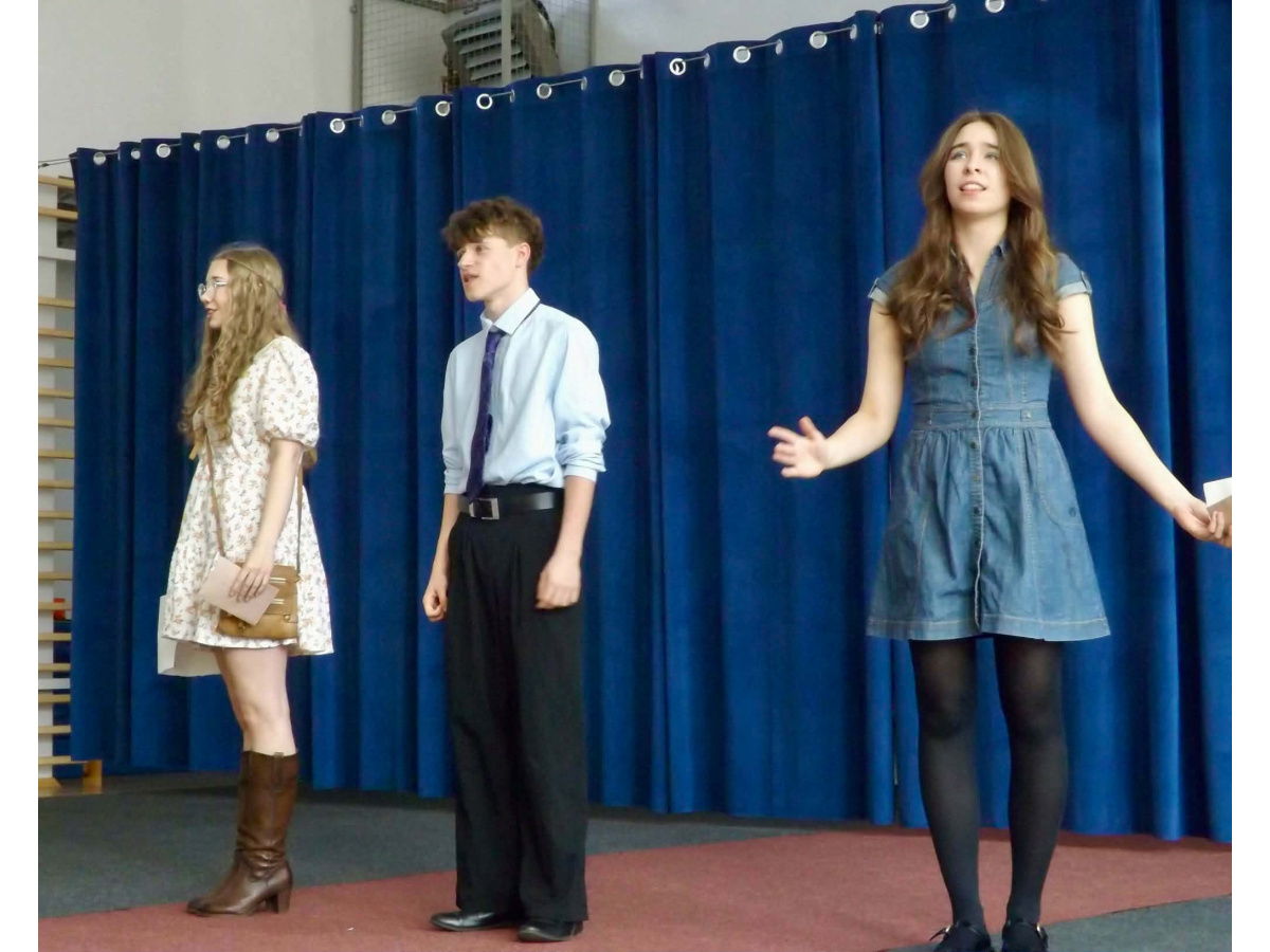Uczniowie zaprezentowali spektakl pt. „A Marvelous Time Ruining Everything”, napisany i wyreżyserowany przez uczennice klas 3AB – Polę Galińską oraz Zuzannę Mogielnicką.