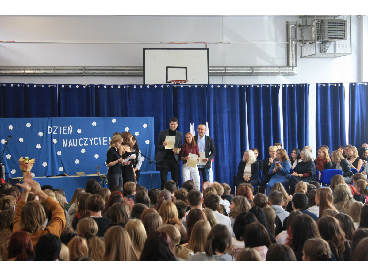 13 października z okazji Dnia Edukacji Narodowej, powszechnie nazywanego Dniem Nauczyciela, Samorząd Uczniowski IX Liceum Ogólnokształcącego przygotował uroczystość, której najważniejszym punktem było wręczenie tradycyjnych nagród nauczycielom naszej szkoły. W tym roku wręczyliśmy nagrody w następujących kategoriach: