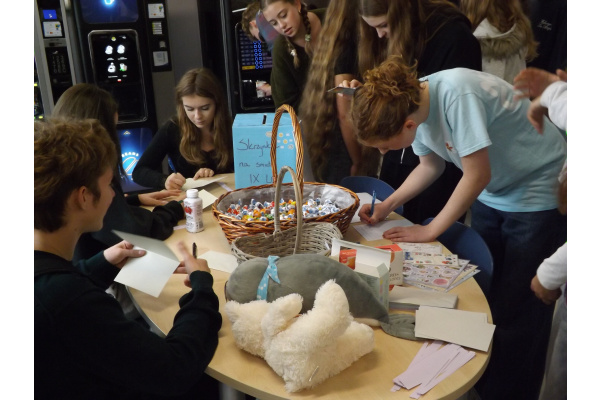 Uczniowie mieli okazję wyrazić swoje ciepłe uczucia, pisząc miłe listy. Powstało kilkadziesiąt kolorowych, ozdobnych listów napisanych do rówieśników, nauczycieli oraz innych pracowników szkoły.