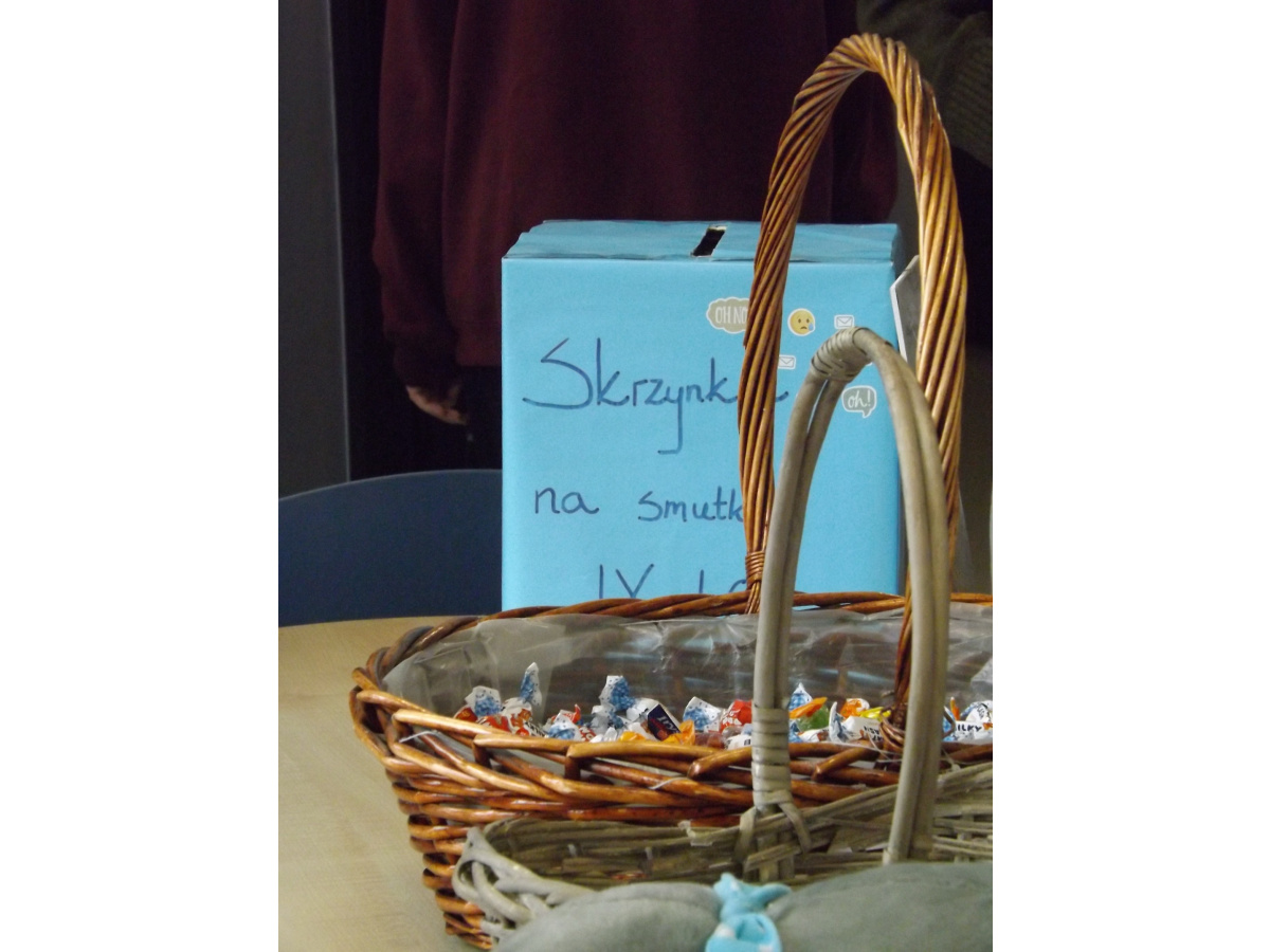 Stworzyliśmy specjalną przestrzeń, gdzie każdy mógł anonimowo opisać swoje smutki, zmartwienia lub trudne emocje i wrzucić je do specjalnej Skrzynki Smutków. To symboliczny akt pozbycia się ciężaru i znak, że w naszej szkole nie boimy się trudnych tematów.