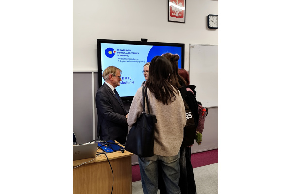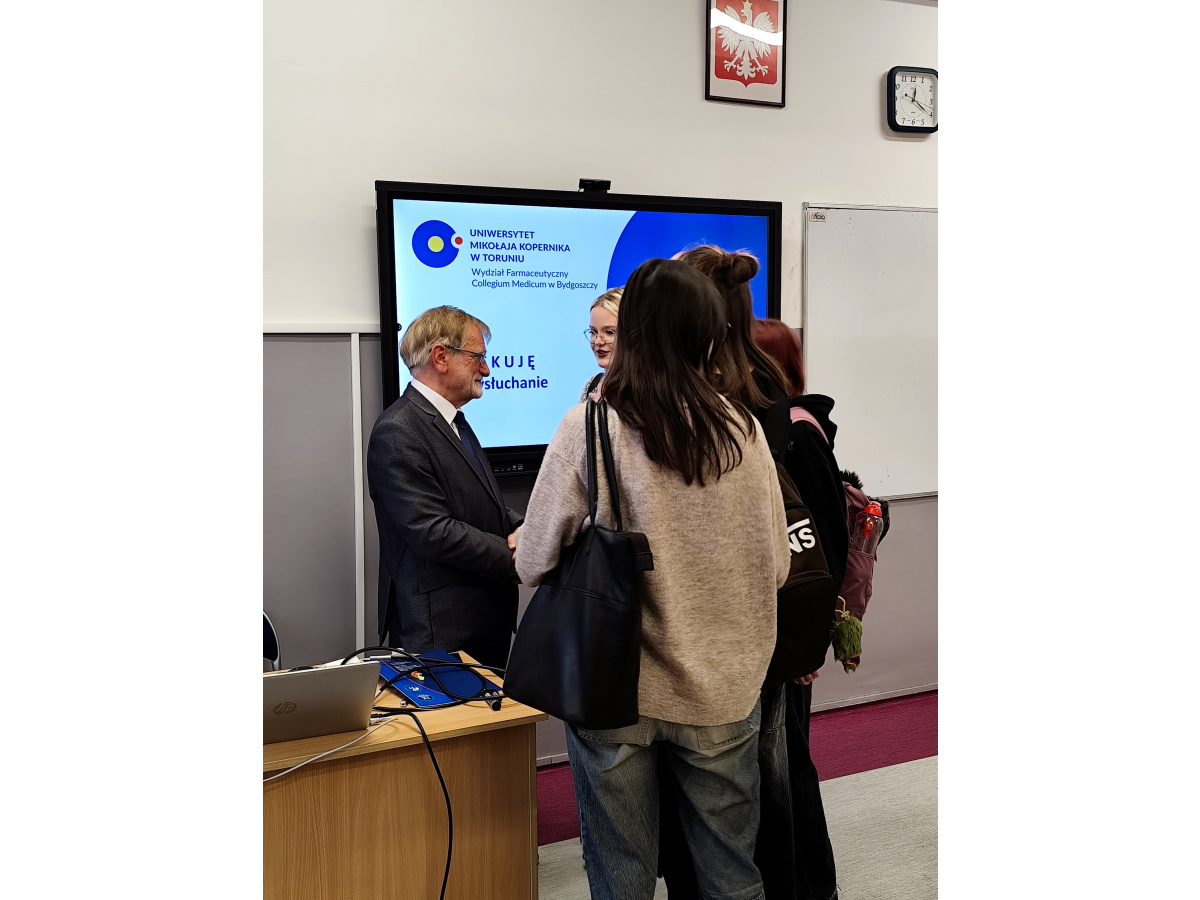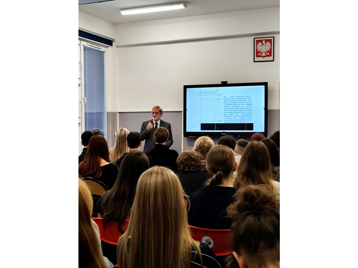 W dniu 2 grudnia uczniowie uczestniczyli w wykładzie prowadzonym przez prof. dr. hab. Stefana Kruszewskiego, Kierownika Katedry Biofizyki Collegium Medicum w Bydgoszcz UMK w Toruniu dotyczącym nowoczesnych zastosowań fluorescencji w diagnostyce i leczeniu nowotworów.