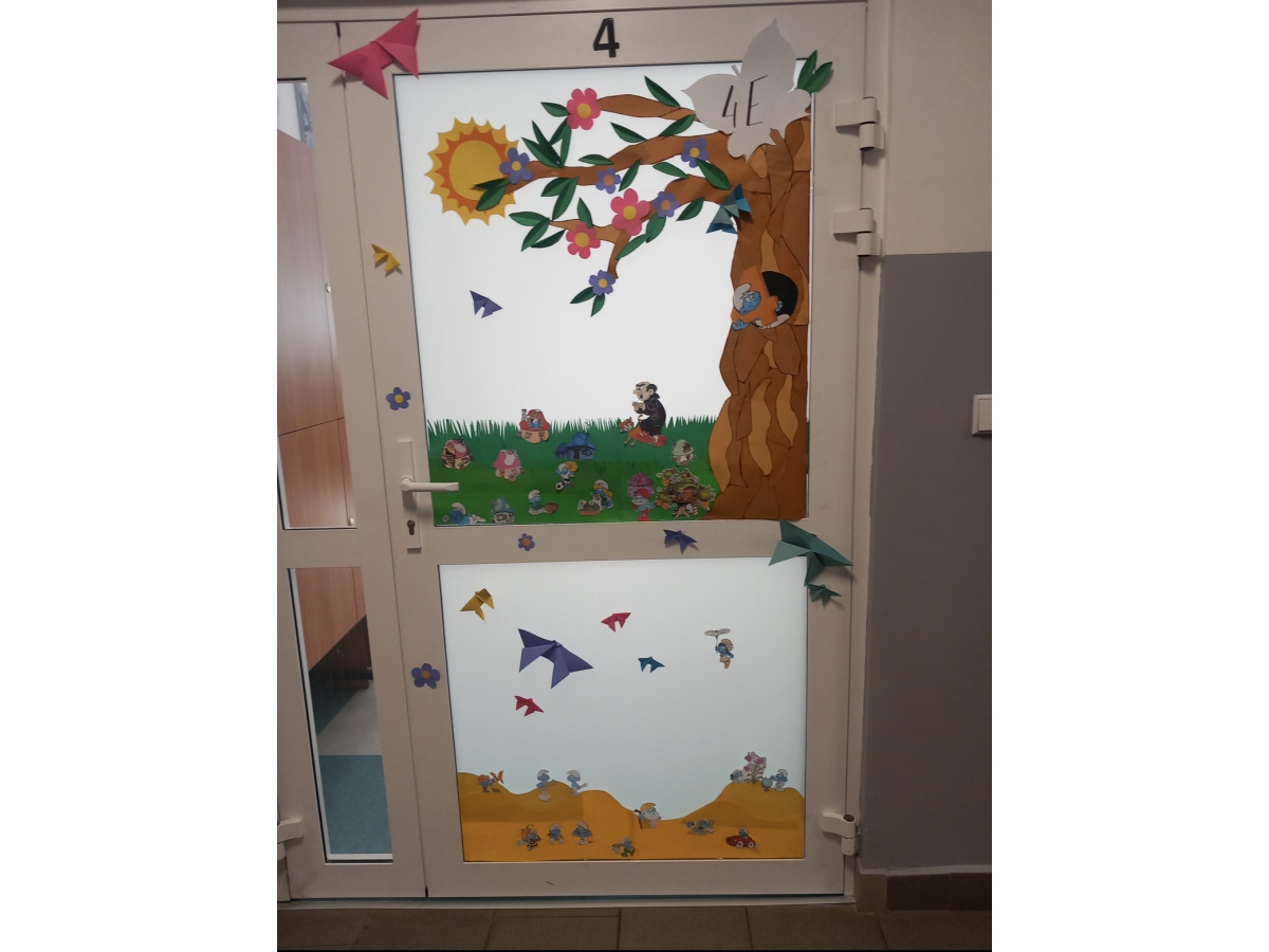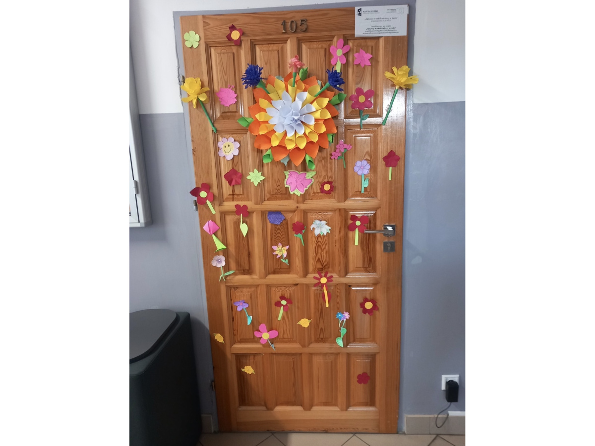 W poniedziałek przyszliśmy do szkoły w kolorowych strojach. Na korytarzu rozbrzmiały wiosenna przeboje. Mogliśmy posłuchać znanych polskich utworów dedykowanych „WIOŚNIE”, takich jak : „Wiosna, ach to ty” – Marek Grechuta, Wszystko kwitnie wkoło – Skaldowie i inne utwory wybrane przez uczniów. Kolejną atrakcją było rozstrzygnięcie konkursu na najciekawszą dekorację drzwi klasowych w klimacie wiosennej ekspresji.