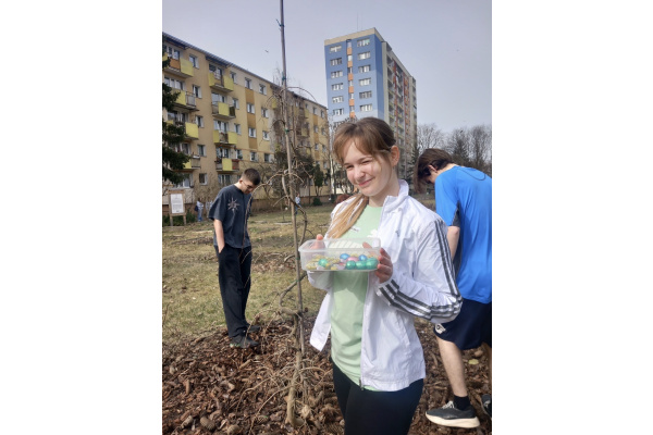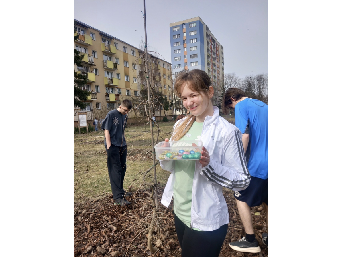 „ ZAJĄCA”. Szukanie czekoladowych słodkości w ogrodzie sprawiło uczniom dużo radości,a trwająca rywalizacja między klasami o zebranie jak większej ilości czekoladek mobilizowała do aktywności.