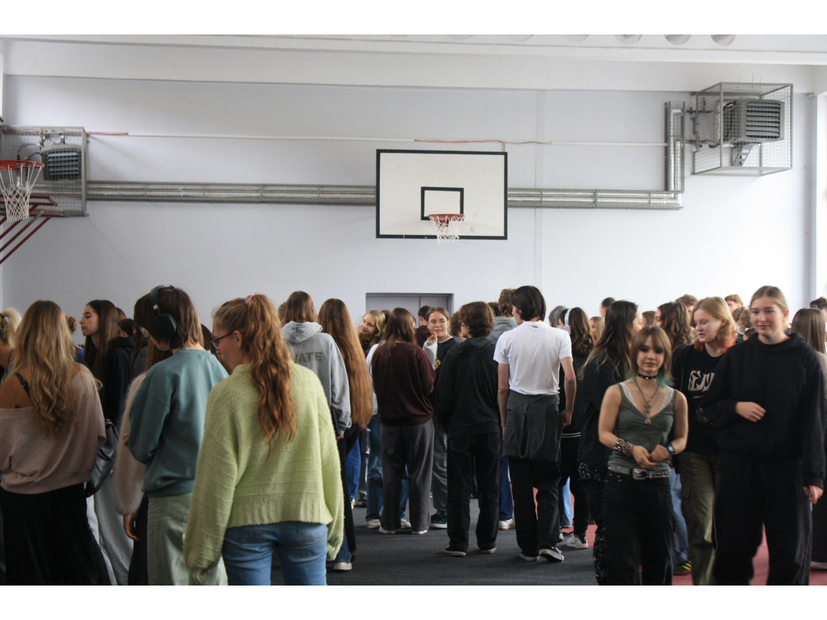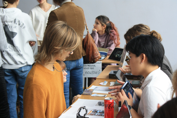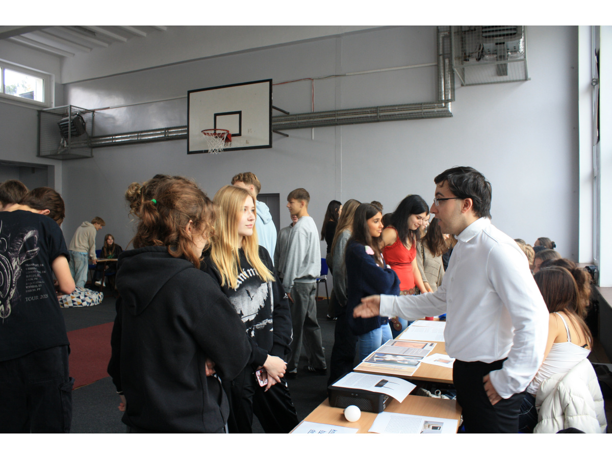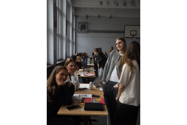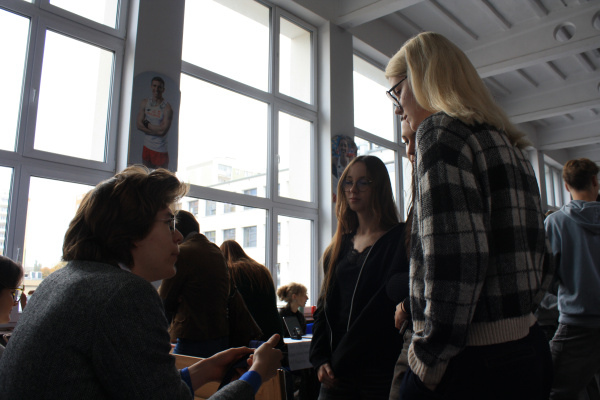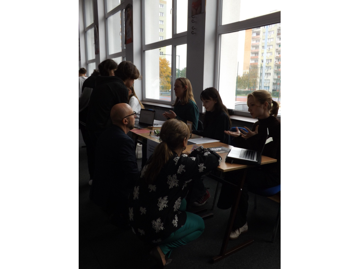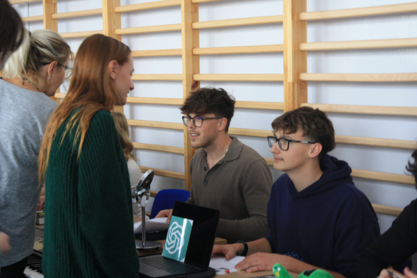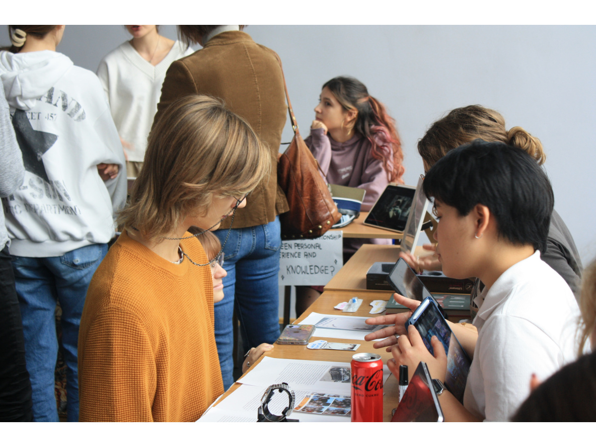 Podczas wystawy można było usłyszeć wiele ciekawych rozmów i interpretacji. Goście chętnie zatrzymywali się przy poszczególnych stanowiskach, pytając autorów o inspiracje i proces tworzenia. Atmosfera była swobodna, refleksyjna i pełna intelektualnej ciekawości – dokładnie taka, jaka towarzyszy duchowi przedmiotu TOK.