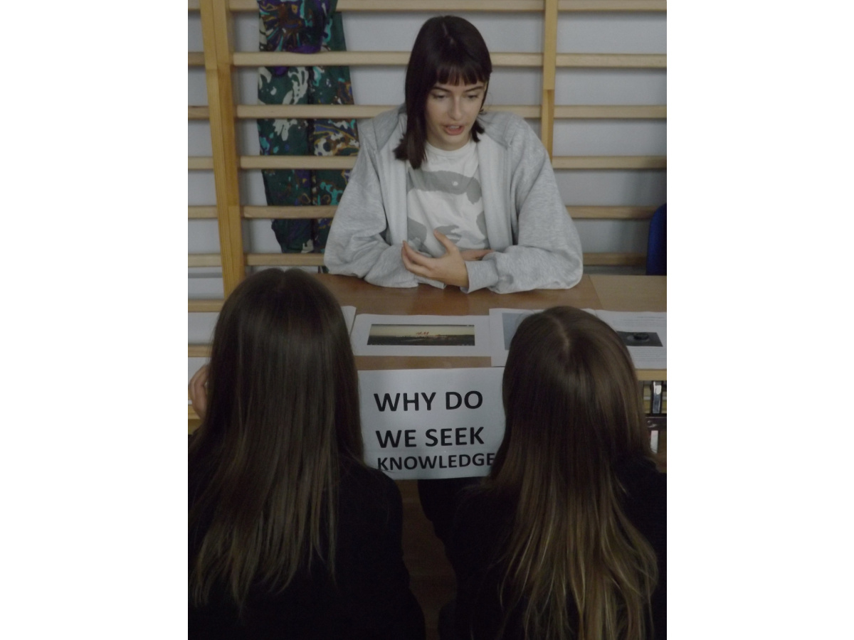 Na wystawie zaprezentowano różnorodne przedmioty, plakatyi prezentacje, poprzez które uczniowie odpowiadali na pytania takie jak: Skąd wiemy to, co wiemy?, Czy emocje mogą być źródłem wiedzy?, Jak język wpływa na sposób postrzegania świata? Każda praca była osobistą refleksją nad tym, jak różne obszary wiedzy – nauki przyrodnicze, sztuka, etyka czy historia – kształtują nasze rozumienie rzeczywistości.